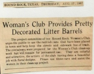 As a result of this meeting, the ladies chartered Round Rock Woman’s Club. It became affiliated with the Federation of Women’s Clubs.